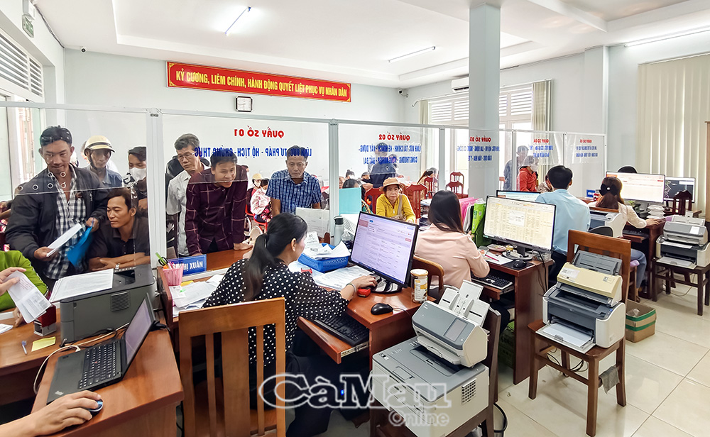 Người dân làm thủ tục hành chính tại Trung tâm Phục vụ hành chính công xã Phong Thạnh, Cà Mau, hưởng lợi từ chương trình xuất khẩu lao động theo hợp đồng.